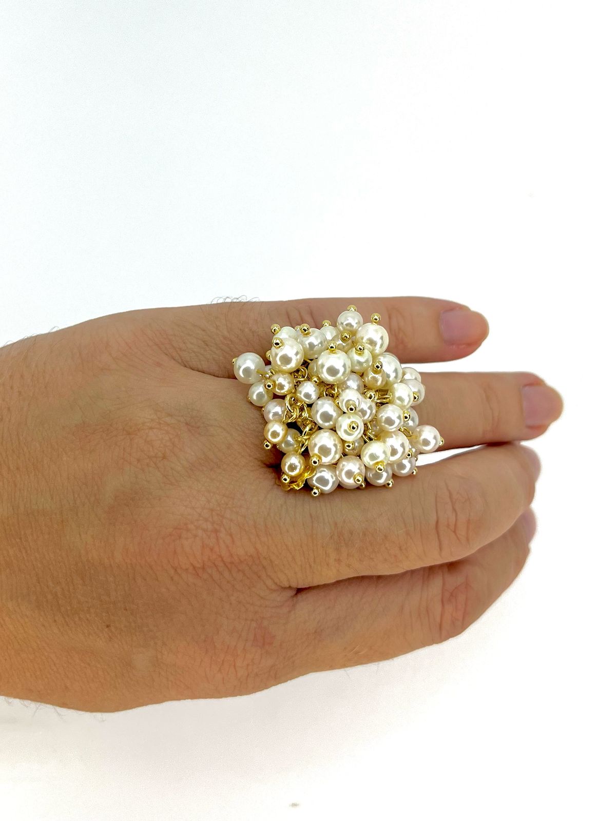 Anel 4v. de bolinha dourada com pérolas pequenas
