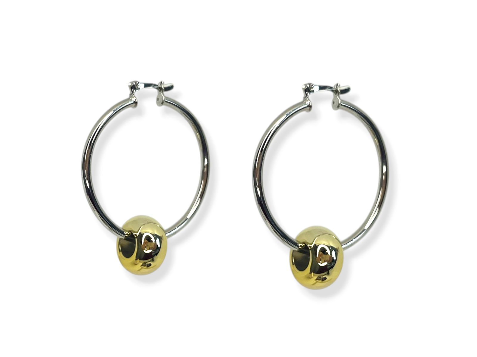 Argola níquel com entremeio dourado