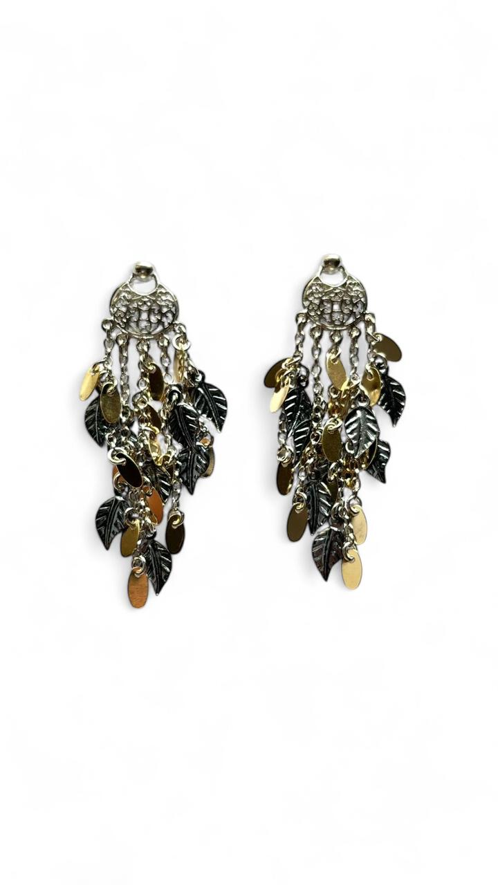 Brinco arabesco dourado com correntes e pingentinhos leves