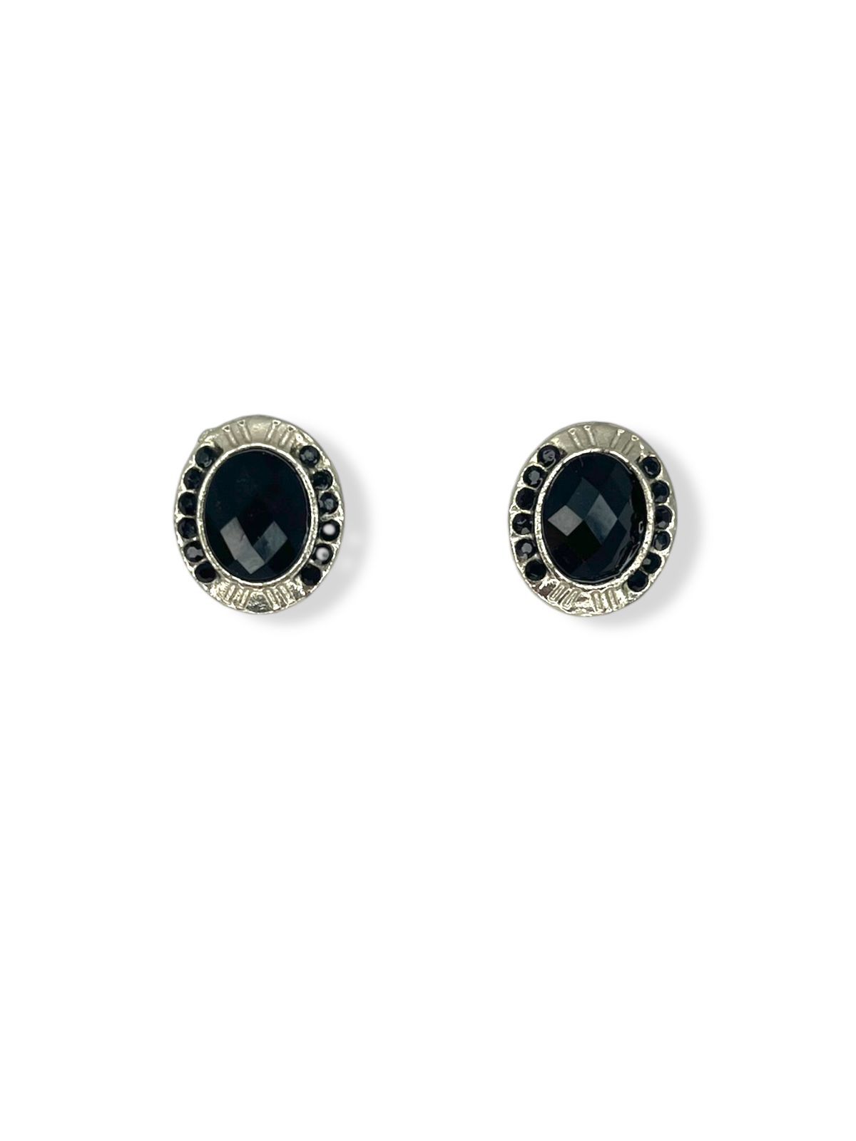 Brinco oval niquel com strass jet