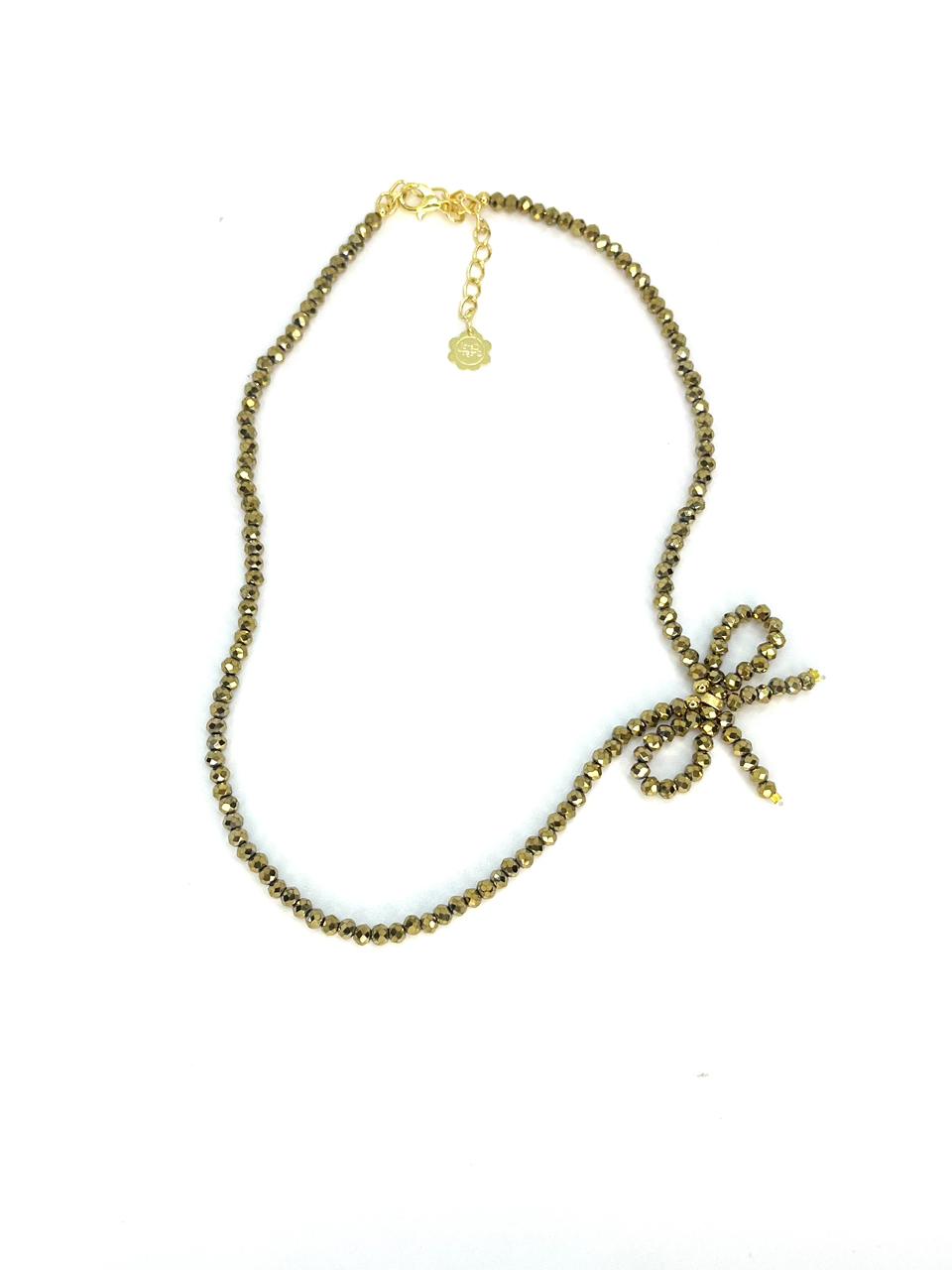 Chocker de minicristais com laço na lateral