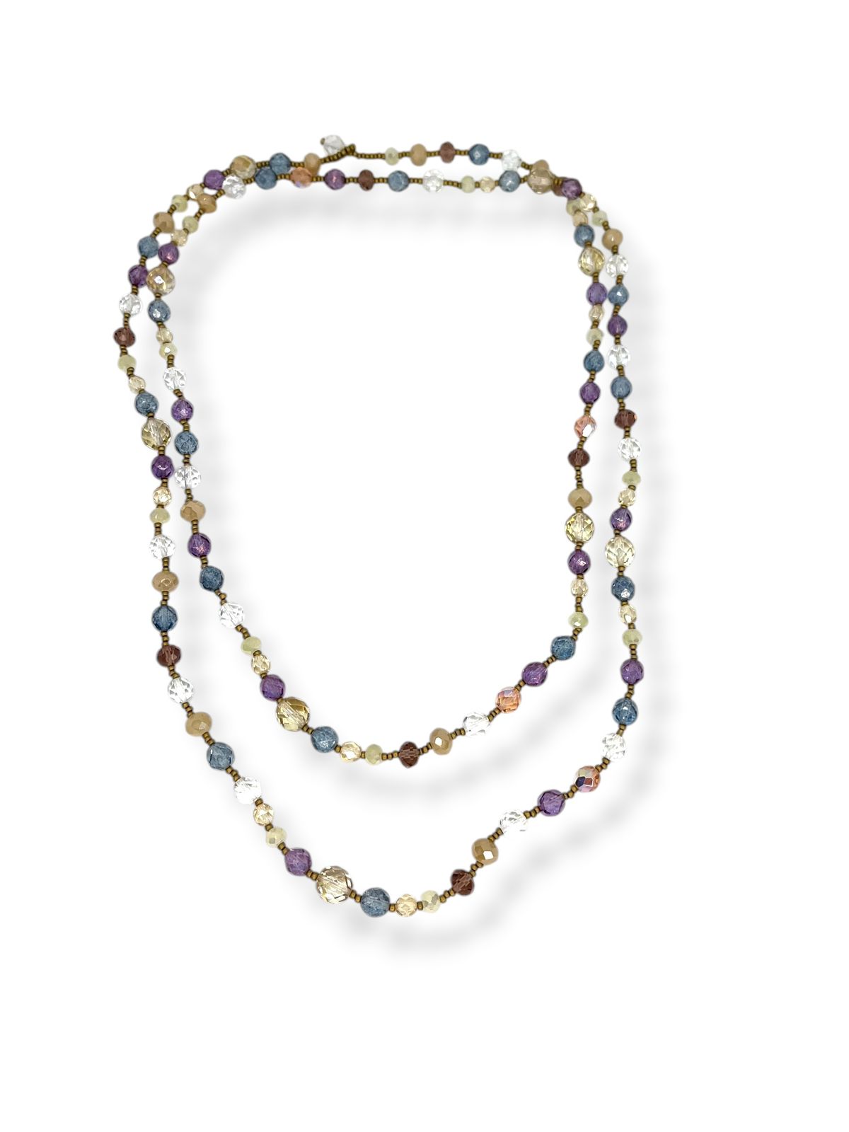 Colar 1v. comprido com missangas e cristais coloridos