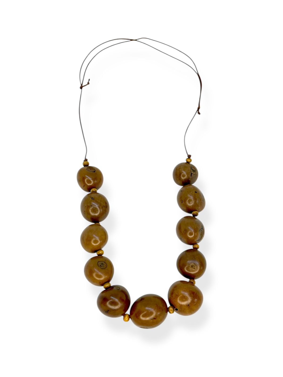Colar 1v. de cordão fino marrom com sementes de baru