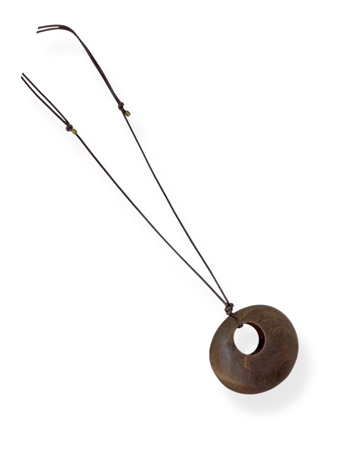 Colar 1v. de cordão marrom e pingente de madeira