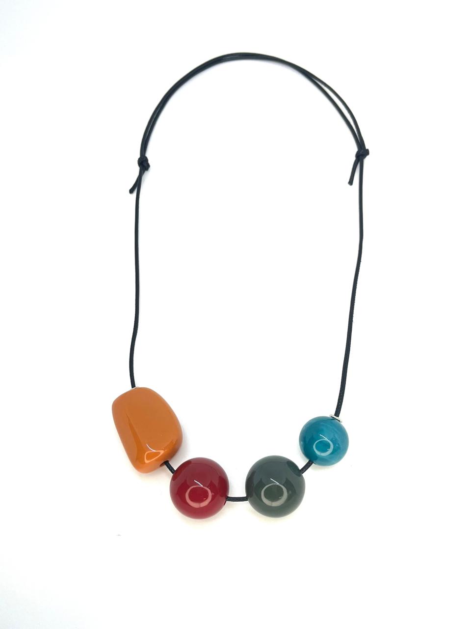Colar 1v. de cordão preto com resinas coloridas