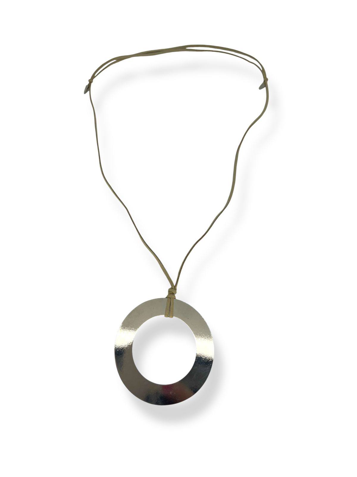 Colar 1v. de cordão camurça bege com pingente redondo níquel