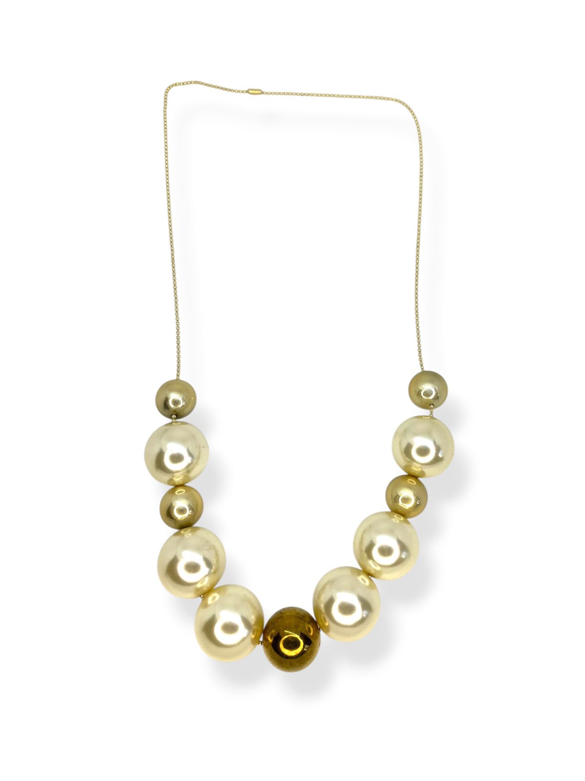 Colar 1v. de corr. dourada com bolas abs e pérolas grandes