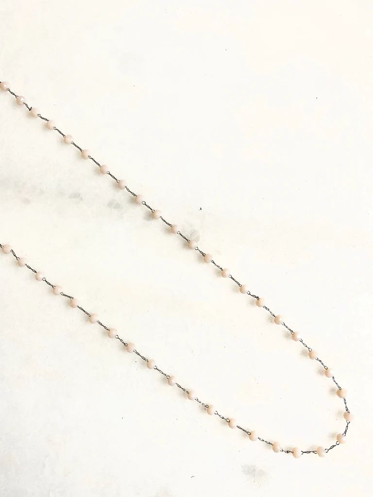 Colar 1v. de corr. fininha niquel com minicristais rosa nude