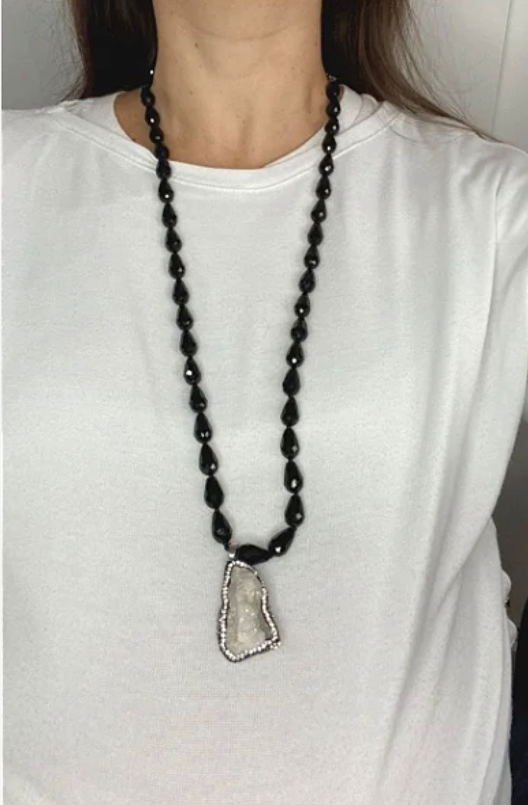 COLAR 1V. DE GOTAS DE CRISTAL PRETO E PEDRA DRUZA