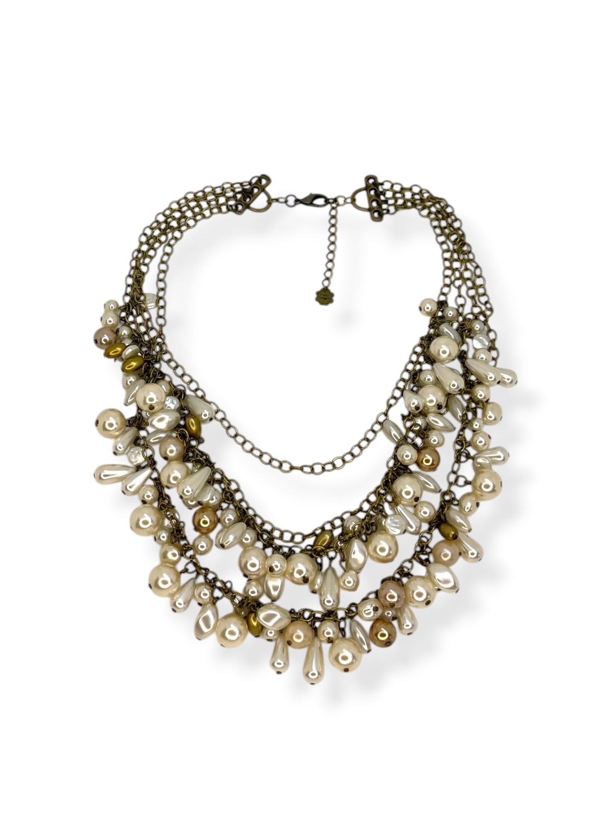 Colar 4v. de corr. o. velho com pérolas de cores e formatos diversos
