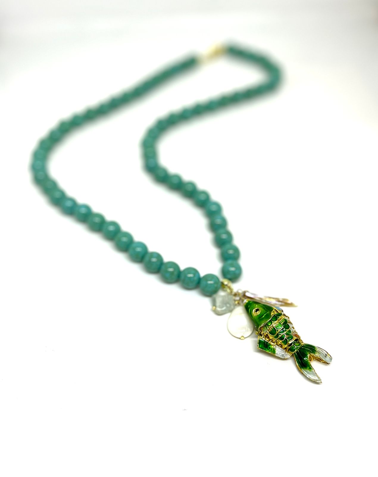 COLAR LONGO DE RESINA TURQUESA COM PINGENTE DE PEIXE DE CLOSONET