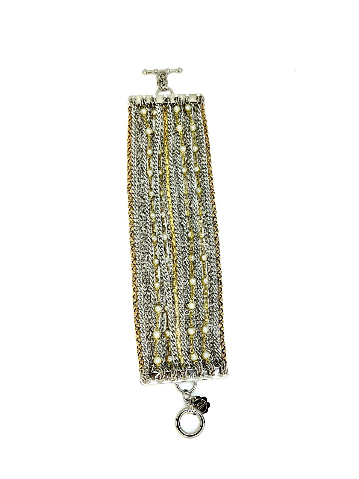 Pulseira 21 voltas de correntes diversas com mix de banhos