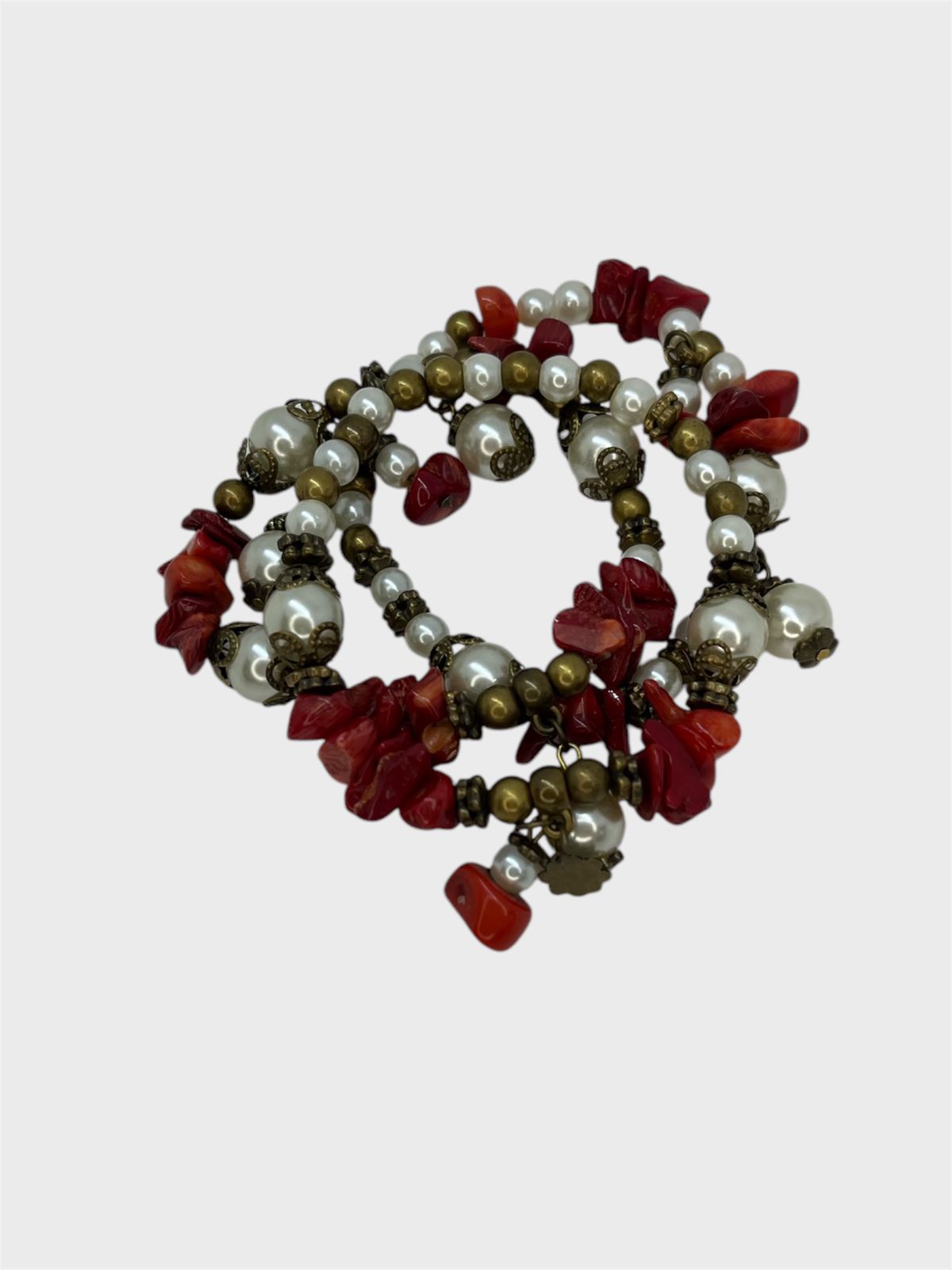Pulseira 3v, de cascalho coral, pérola e entremeio o. velho